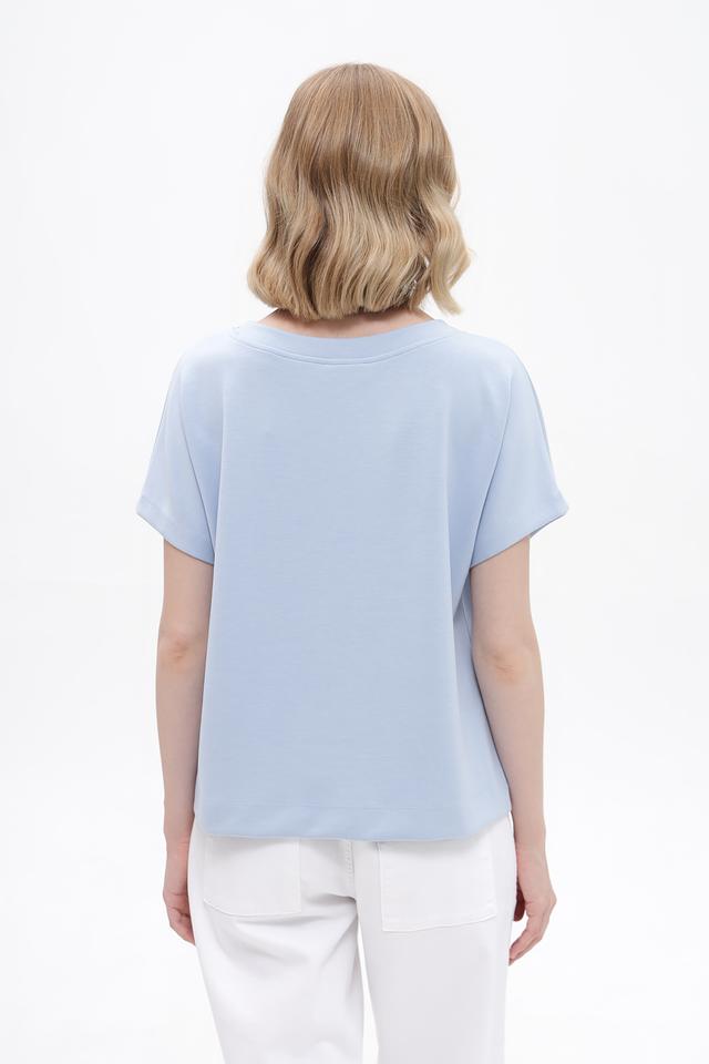Женская футболка Monari голубого цвета – это стильное и комфортное решение для повседневного гардероба. Изделие выполнено из приятной к телу ткани, сочетающей в себе 52% модал, 42% полиэстер и 6% эластан.