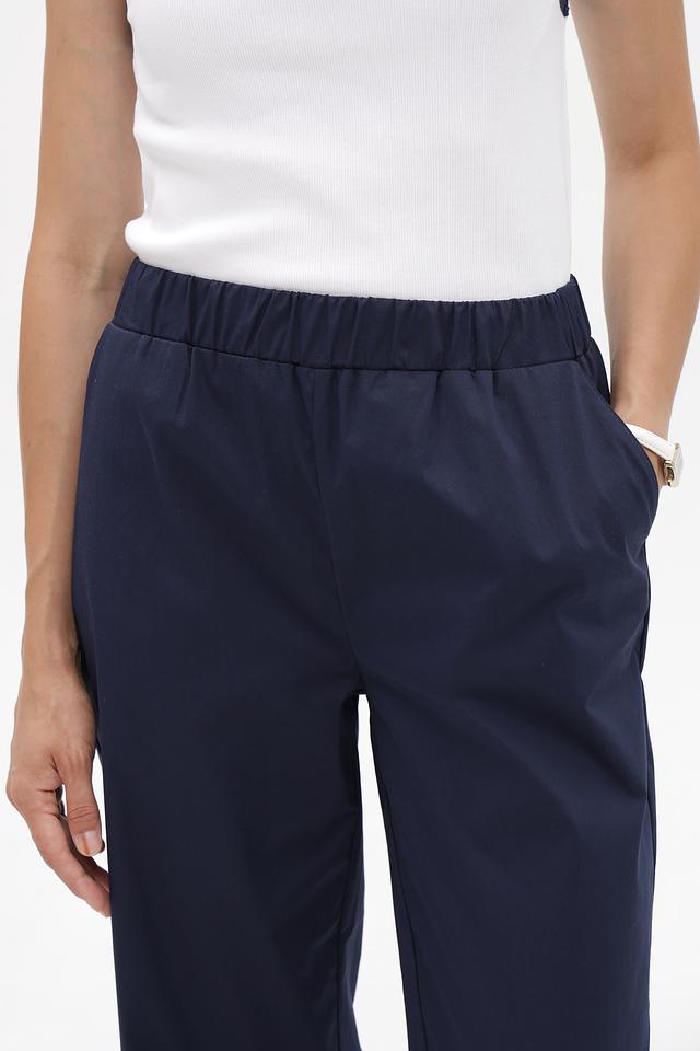 Женские брюки-кюлоты Monari темно-синего цвета, с эластичным поясом и боковыми карманами. Изготовлены из хлопка с добавлением полиамида и эластана, обеспечивающих комфорт и свободу движений. Состав: хлопок 60%, полиамид 37%, эластан 3%