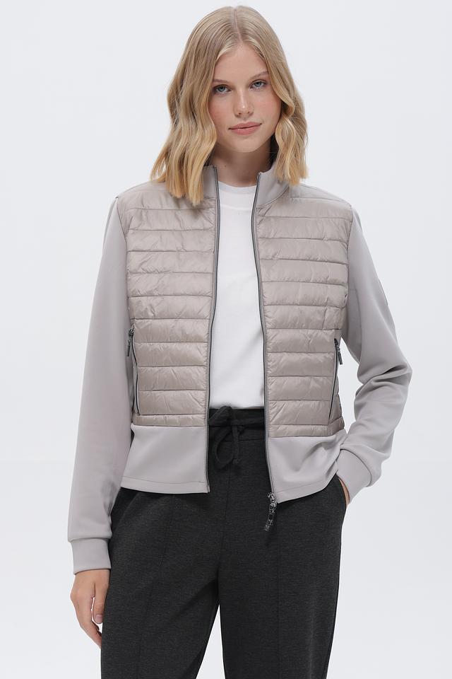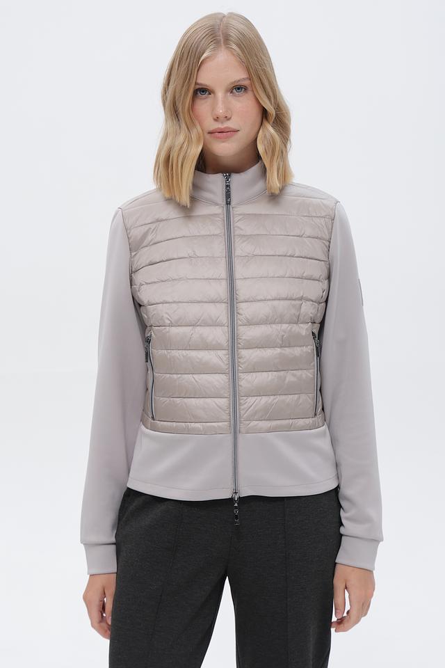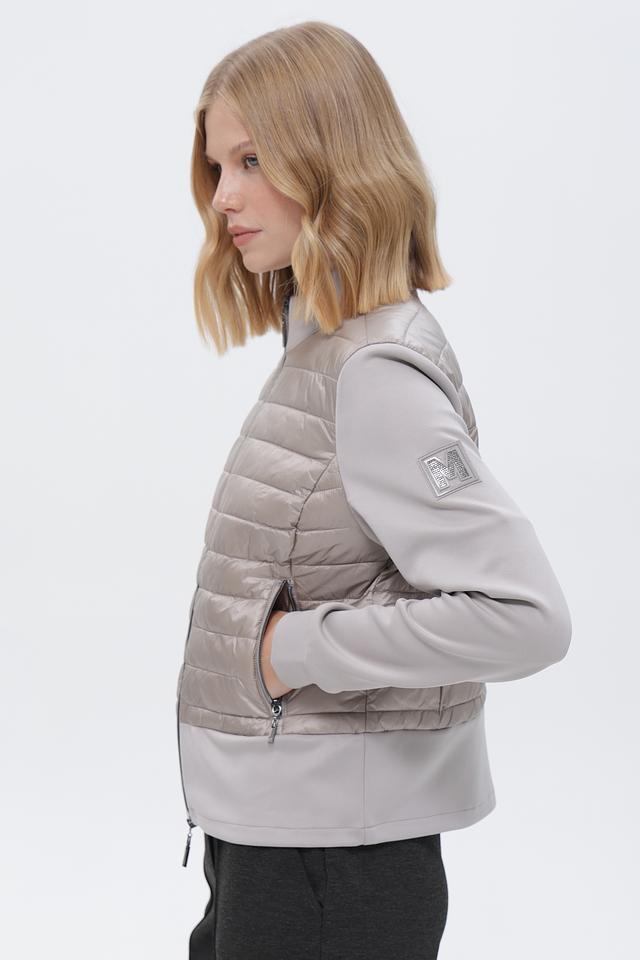 Стильная куртка-жилет Monari серого цвета с комбинированным дизайном. Изготовлена из полиэстера с добавлением эластана для комфорта и свободы движений. Удобная модель для создания многослойных образов. Состав: полиэстер 92%, эластан 8%