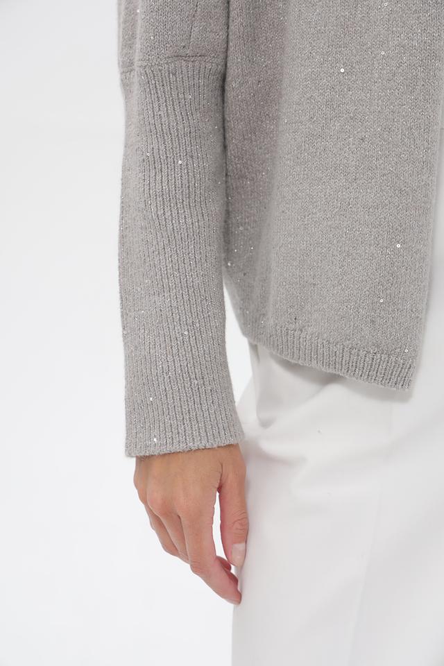 Представляем элегантный жакет от бренда Monari. Модель выполнена в сером цвете и украшена деликатной вышивкой из пайеток, что придает ей особый шарм.