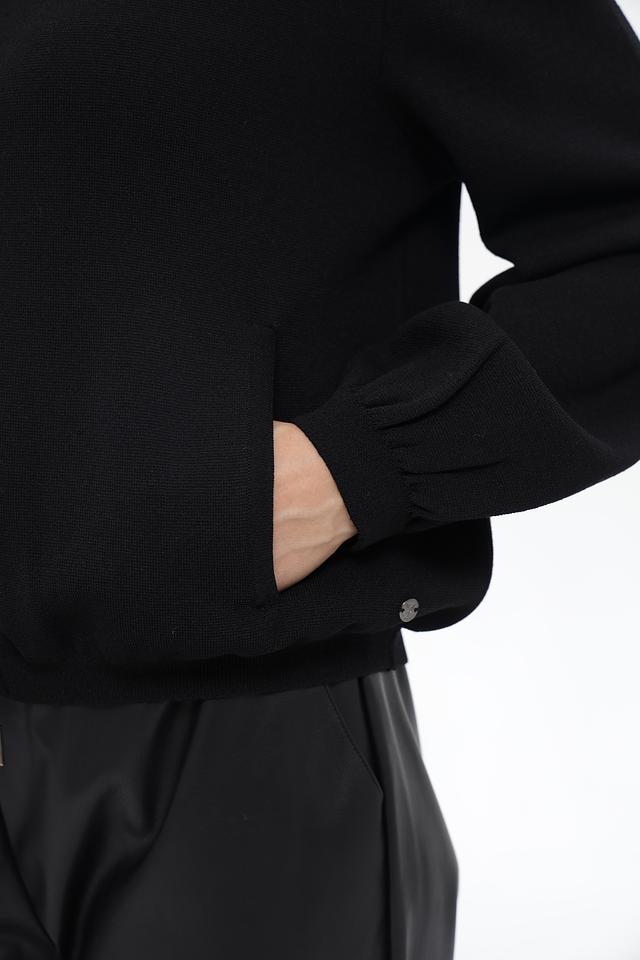 Чёрный жакет Monari с застежкой на молнию и рукавами-фонариками. Модель выполнена из смесового материала с содержанием вискозы, обеспечивающего комфорт и приятные тактильные ощущения. Состав: полиэстер 60%, вискоза 40%