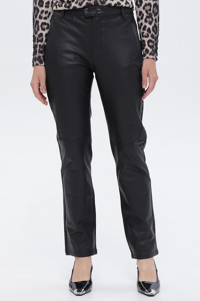 Эти брюки от Monari станут отличным дополнением к вашему гардеробу. Выполнены в классическом чёрном цвете из высококачественной экокожи, имитирующей натуральную кожу.