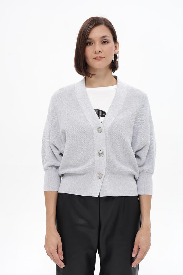 Серый жакет Monari из 100% хлопка — стильное и удобное решение для создания многослойных образов. Модель выполнена из мягкого трикотажа и застегивается на пуговицы. Состав: хлопок 100%
