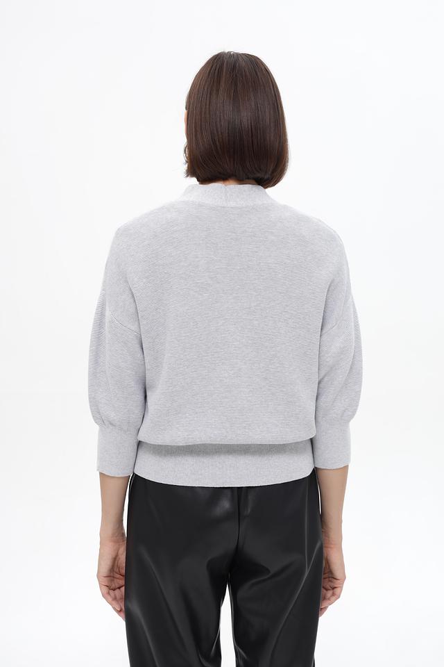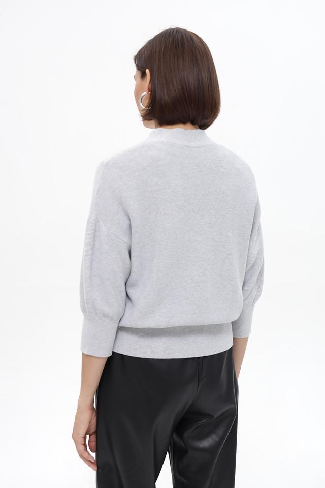 Жакет имеет V-образный вырез, который визуально удлиняет шею и подчеркивает линию декольте. Застежка выполнена на ряд декоративных пуговиц. Рукава 3/4 добавят образу лёгкости и непринужденности.