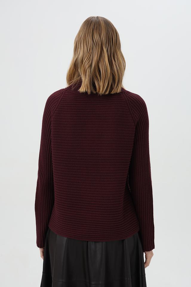 Пуловер имеет приталенный силуэт, который подчеркивает фигуру, и длинные рукава с трикотажным узором в рубчик.
