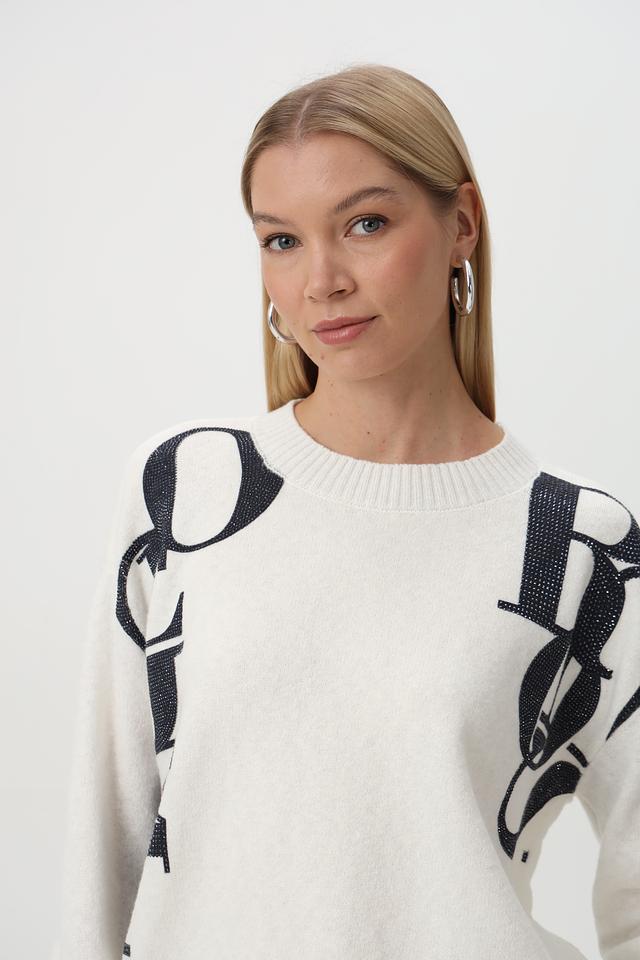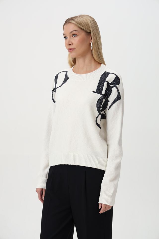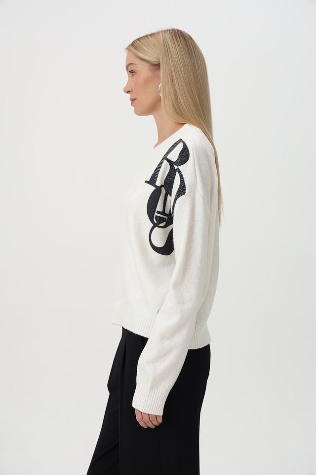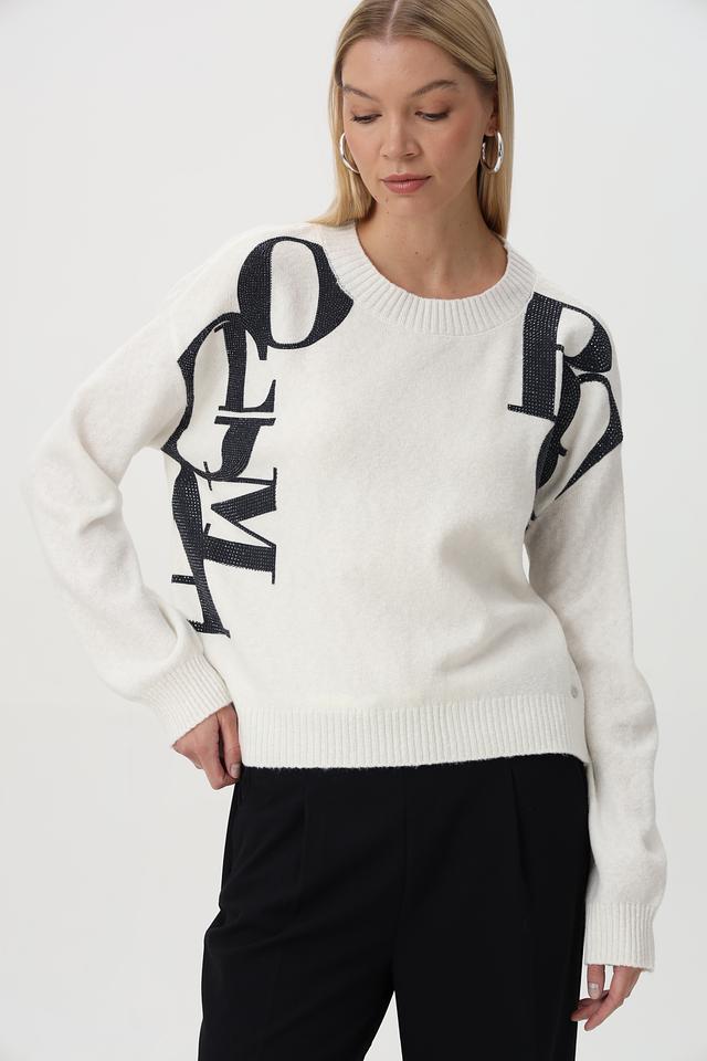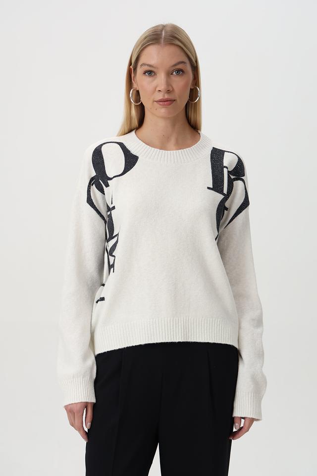Элегантный джемпер от бренда Monari станет ярким акцентом вашего гардероба. Модель выполнена в белом цвете и украшена эффектным принтом в виде губ.