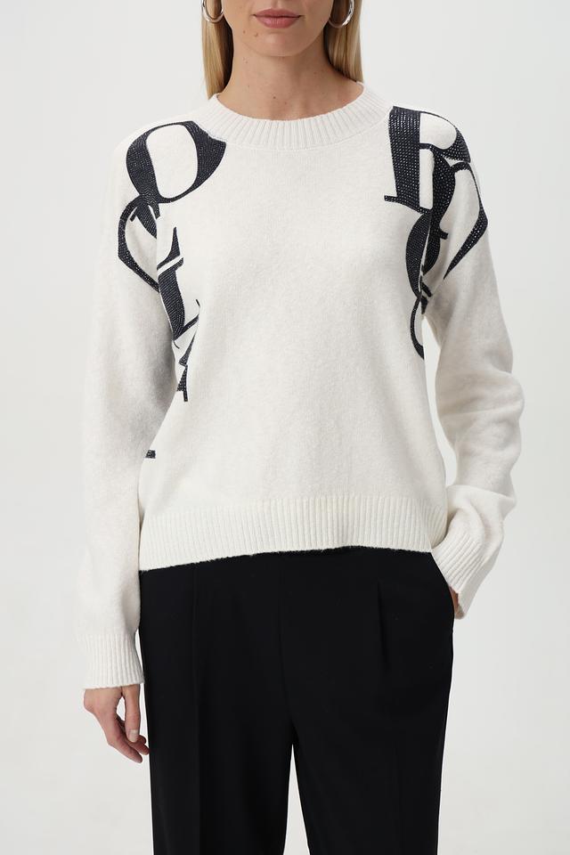 Белый джемпер от Monari с оригинальным принтом в виде губ. Изготовлен из мягкого смесового состава с добавлением хлопка. Идеально дополнит ваш повседневный образ. Состав: полиакрил 38%, хлопок 31%, эластан 21%, полиамид 10%