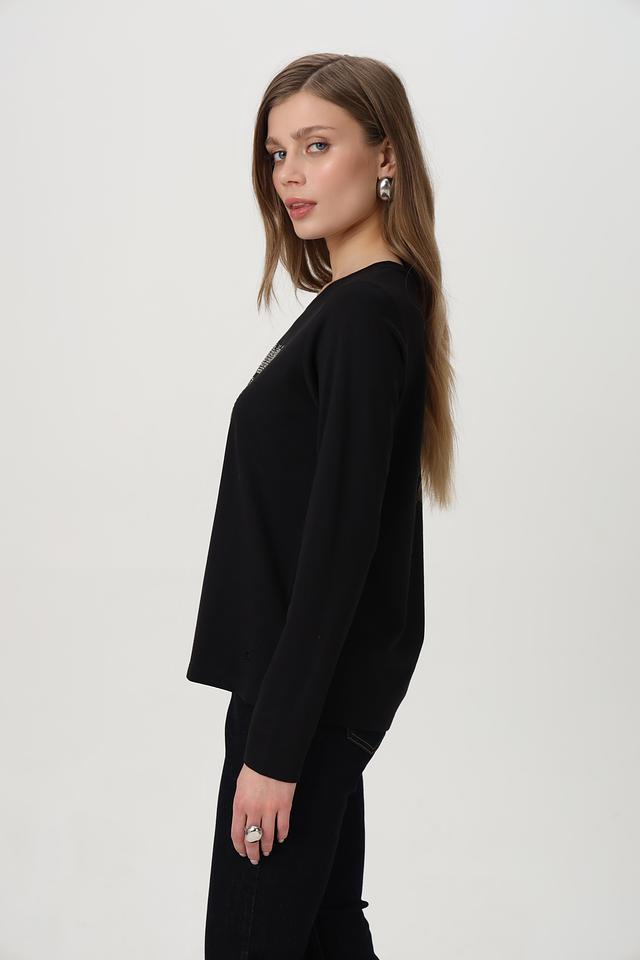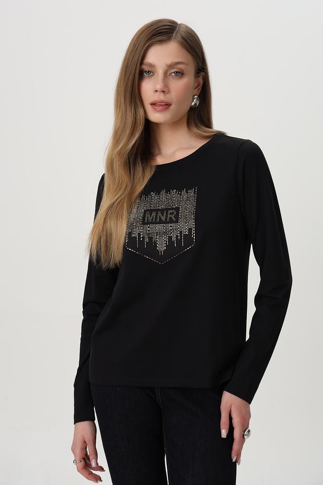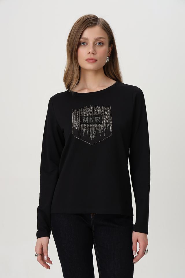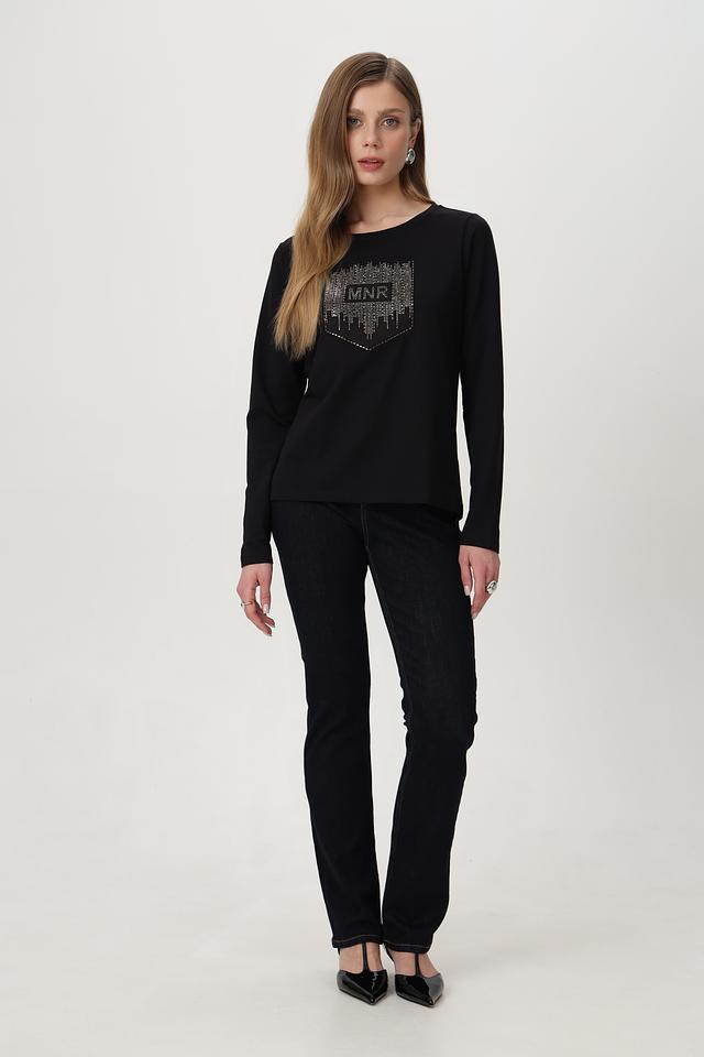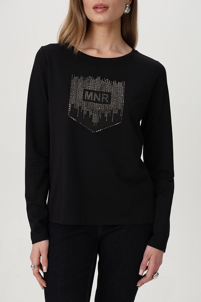 Чёрная футболка Monari с длинным рукавом, украшенная эффектным декором из кристаллов. Изготовлена из мягкого хлопка с модалом для комфорта и приятных ощущений. Идеальный выбор для создания стильного повседневного образа. Состав: хлопок 50%, модал 50%