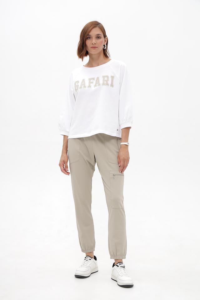 Брюки имеют зауженный к низу силуэт, эластичный пояс со шнуровкой для комфортной посадки и функциональные карманы. Сочетание полиэстера и эластана обеспечивает удобство в носке и сохранение формы изделия.