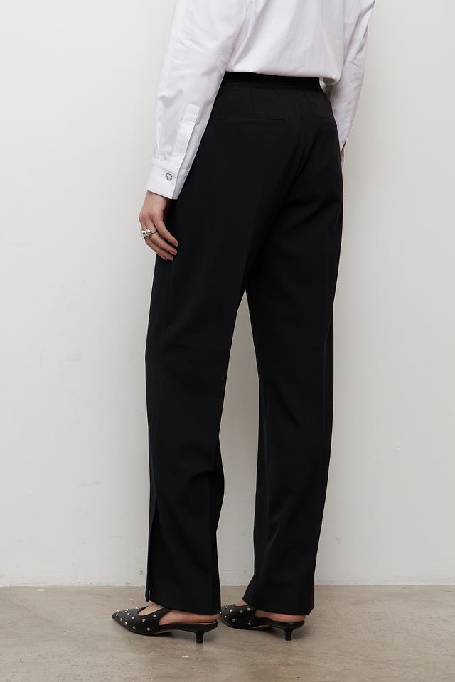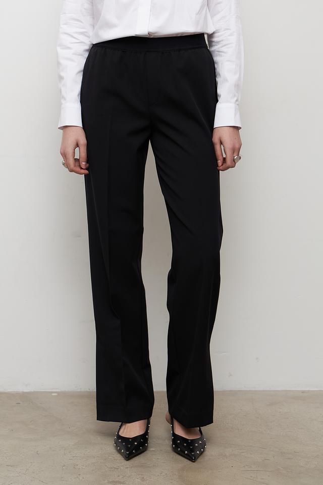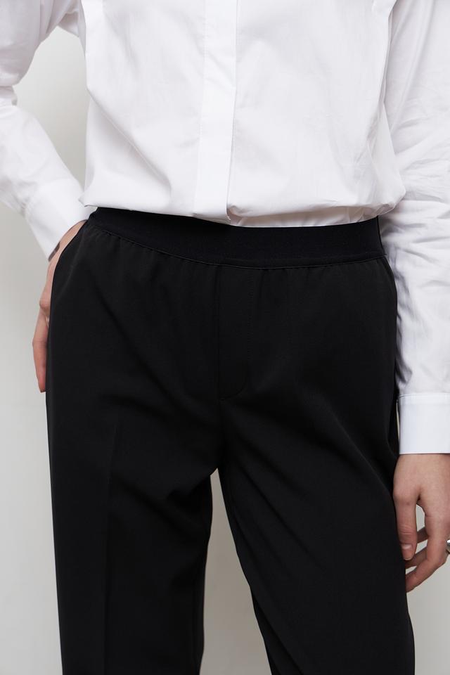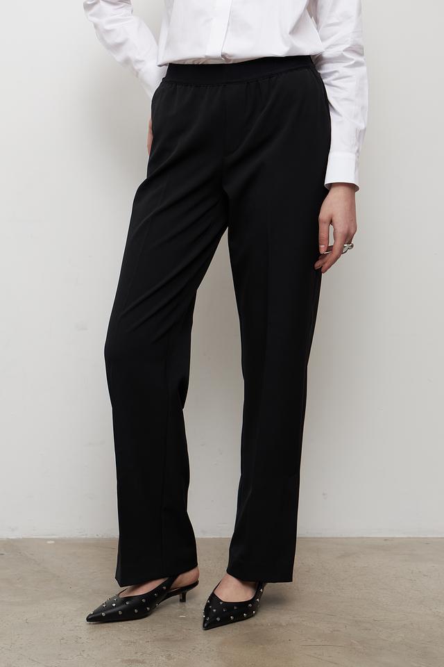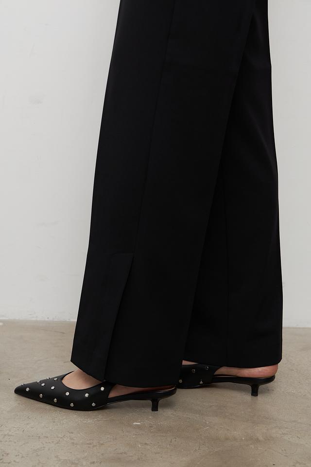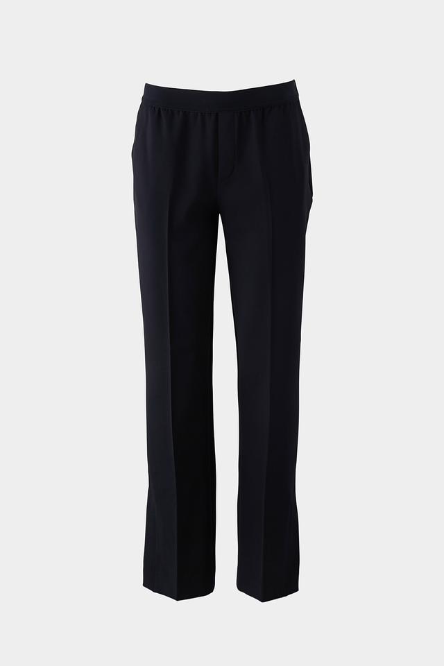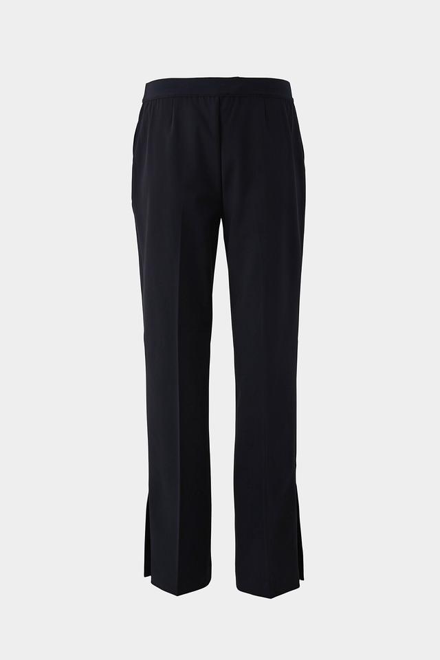 Брюки имеют прямую посадку и высокую талию, что обеспечивает комфорт и подчеркивает достоинства фигуры. Эластичный пояс гарантирует удобную посадку и свободу движений. Ткань, состоящая из полиэстера и эластана, приятна на ощупь и хорошо держит форму.