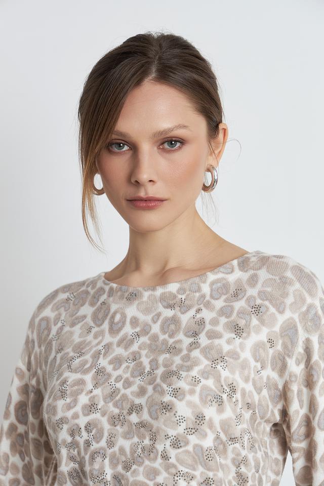 Бежевый пуловер Monari с оригинальным леопардовым принтом и отделкой стразами станет стильным дополнением вашего гардероба. Модель выполнена из мягкого трикотажа, обеспечивающего комфорт в носке. Состав: вискоза 52%, полиэстер 28%, полиамид 20%