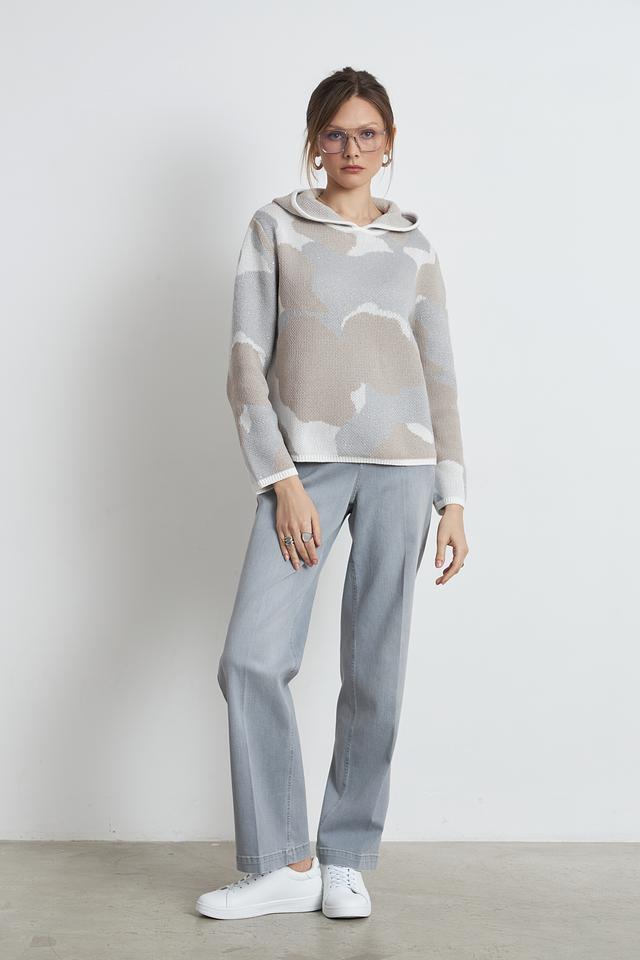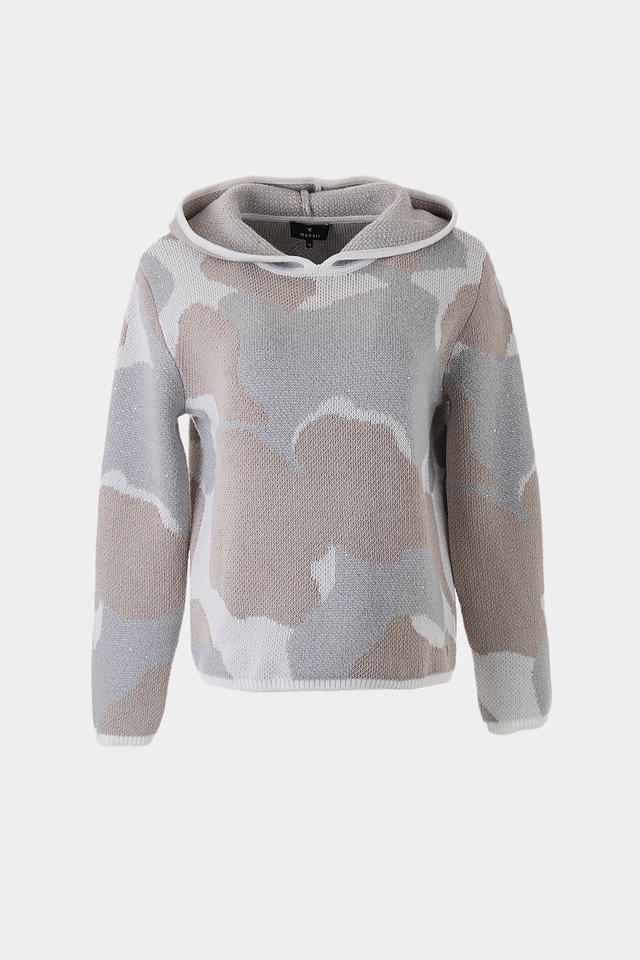 Бежевый пуловер Monari с капюшоном и оригинальным облачным принтом станет стильным дополнением к вашему гардеробу. Изготовлен из мягкого трикотажа, обеспечивающего комфорт и удобство в носке. Состав: полиэстер 45%, хлопок 24%, полиакрил 20%, полиамид 9%, шерсть 2%