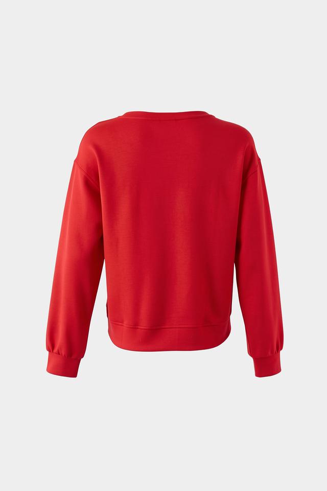 Красный пуловер Monari с ярким белым принтом "Feel the wave" станет стильным дополнением к вашему гардеробу. Модель свободного кроя с круглым вырезом и манжетами на рукавах выполнена из мягкого и приятного к телу трикотажа. Состав: вискоза 48%, полиэстер 47%, эластан 5%