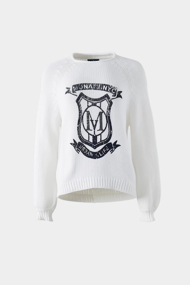 Белый пуловер Monari с крупным логотипом в винтажном стиле станет ярким акцентом вашего образа. Изготовлен из мягкого хлопка, обеспечивающего комфорт в течение всего дня. Состав: хлопок 100%