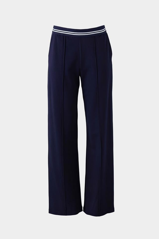 Брюки имеют прямой крой и широкие штанины, что обеспечивает комфорт и свободу движений. Эластичный пояс дополнен декоративными полосками, которые придают брюкам современный и стильный вид. Материал брюк – это сочетание вискозы, полиамида и эластана, что обеспечивает мягкость, приятные тактильные ощущения и хорошую посадку по фигуре.