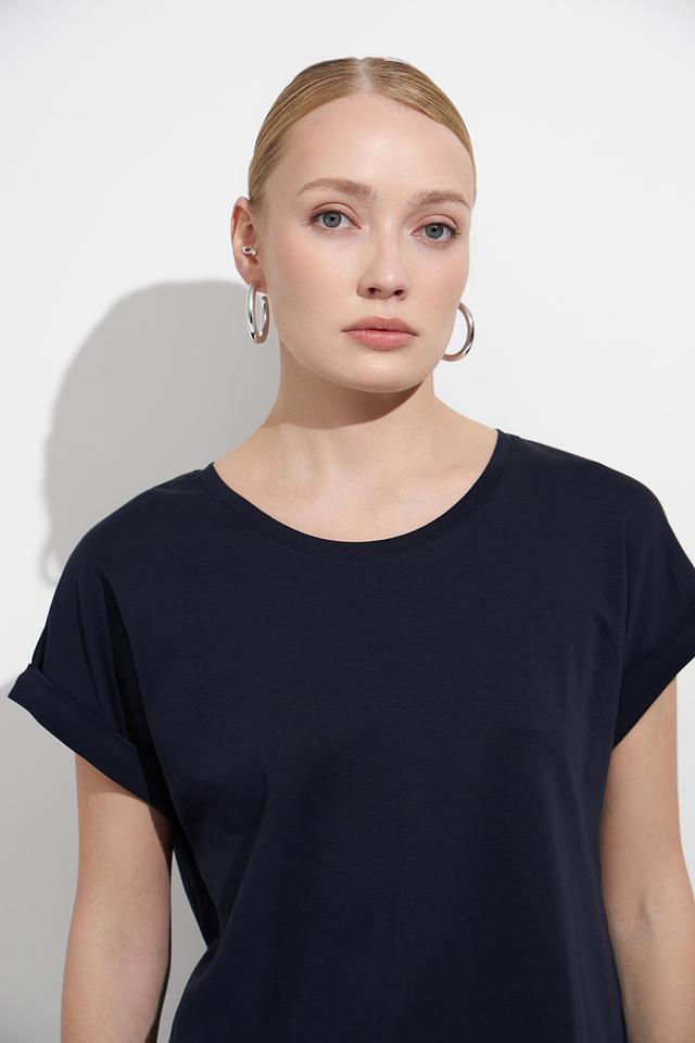 Крой футболки свободный, что обеспечивает свободу движений. Округлый вырез горловины и короткие рукава делают ее идеальным выбором для теплой погоды. Состав футболки – 100% хлопок, что гарантирует ее долговечность и простоту в уходе.