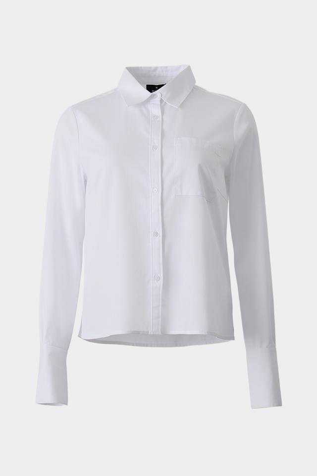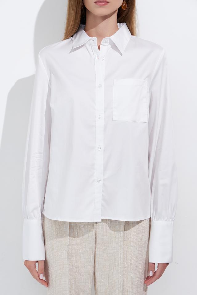 Белая блуза Monari – это классическая рубашка свободного кроя с длинными рукавами и накладным карманом. Изготовлена из хлопка с добавлением полиамида и эластана, что обеспечивает комфорт и удобство в носке. Состав: хлопок 72%, полиамид 26%, эластан 2%