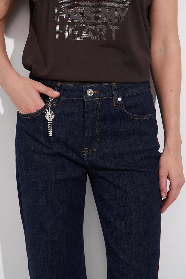 Джинсы Monari тёмно-синего цвета с оригинальной вышивкой по швам — стильное и комфортное решение для повседневного образа. Классический крой и качественный состав обеспечивают удобную посадку и долговечность. Состав: хлопок 89%, полиэстер 8%, эластан 3%