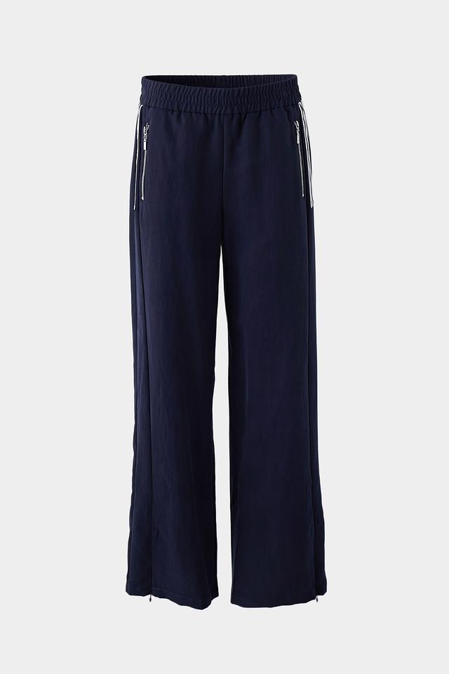 Брюки имеют клёш от бедра, что придает им элегантный и женственный вид. Эластичный пояс обеспечивает комфортную посадку, а боковые полосы добавляют динамики и спортивного шика.