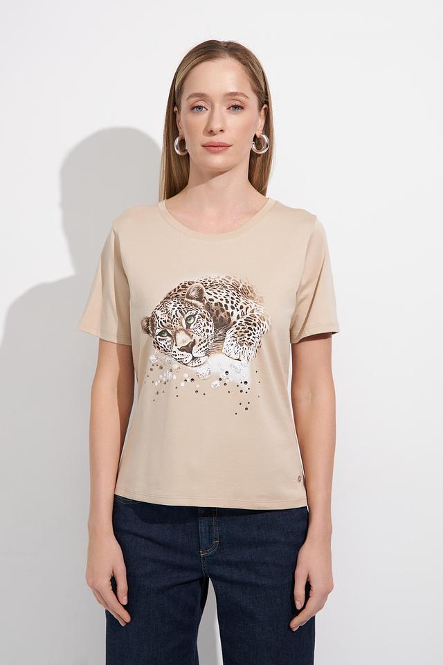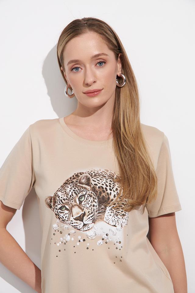 Особенности: Принт с изображением леопарда, круглый вырез горловины, короткие рукава, прямой крой, 100% хлопок.