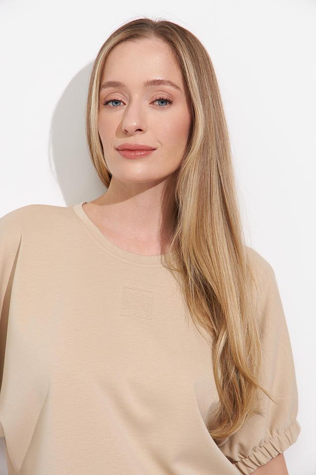 Пуловер имеет свободный крой, который обеспечивает комфорт при носке. Рукава-фонарики добавляют образу женственности и оригинальности. На груди расположен вышитый логотип бренда, который подчеркивает стиль и качество изделия.
