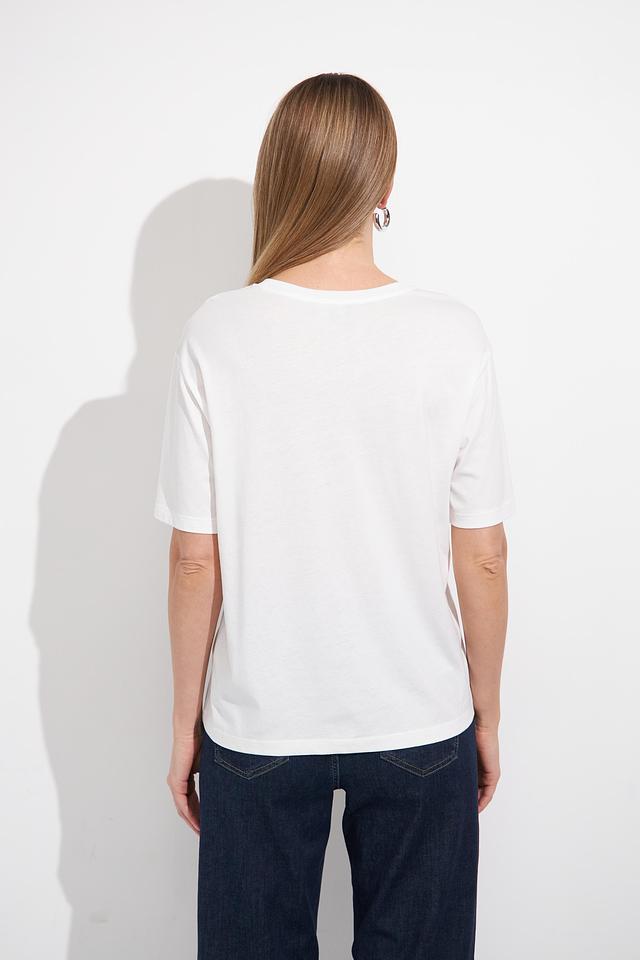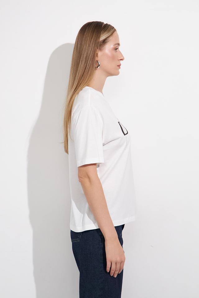 Эта белая футболка от Monari станет незаменимой частью вашего гардероба. Классический крой и лаконичный дизайн делают ее универсальной для создания различных образов.