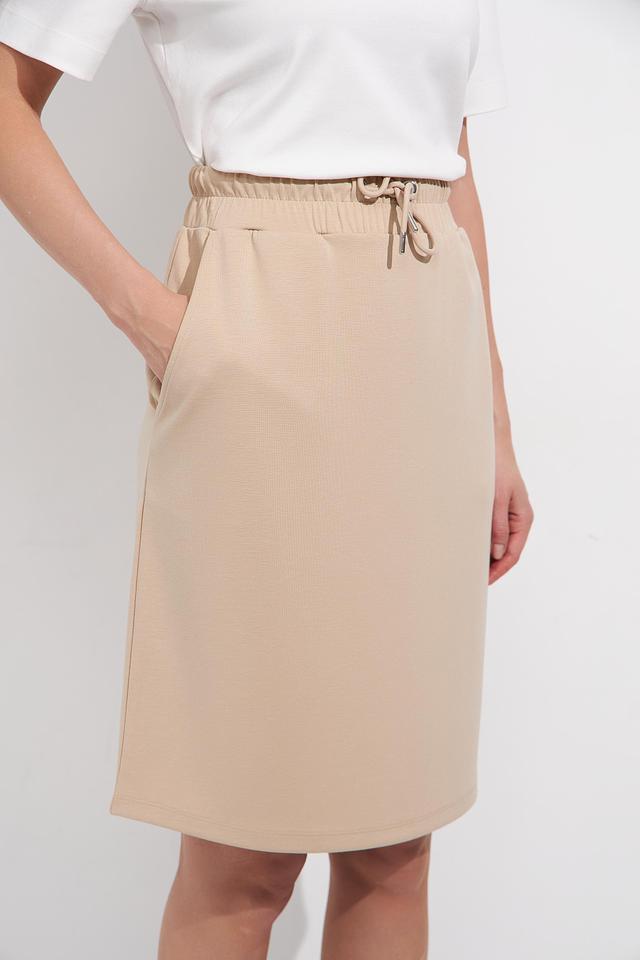 Бежевая юбка-карандаш от Monari – элегантная и комфортная модель длиной миди с эластичным поясом и шнурком. Идеально подходит для создания стильных повседневных образов. Состав: полиэстер 55%, вискоза 38%, эластан 7%