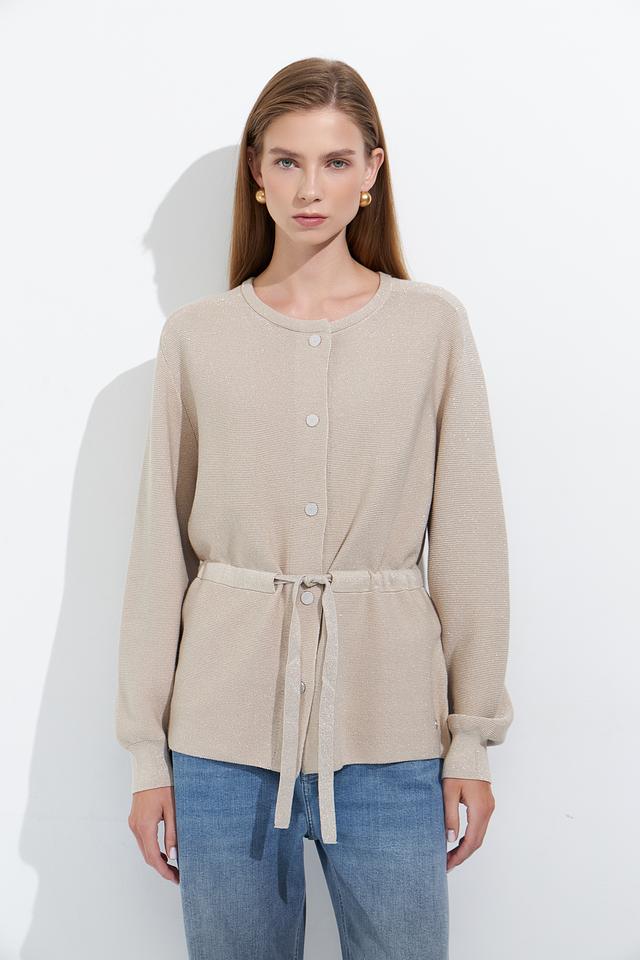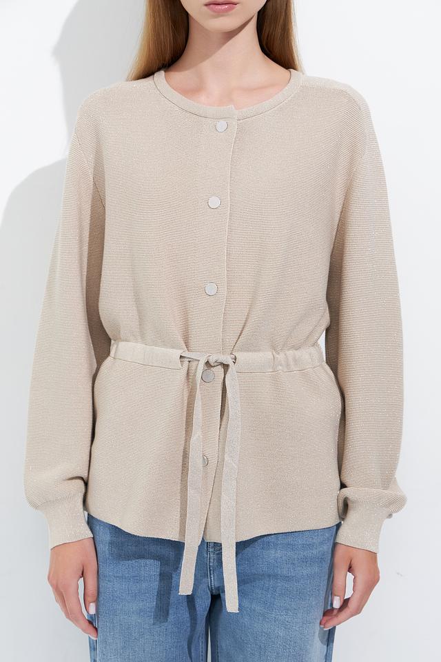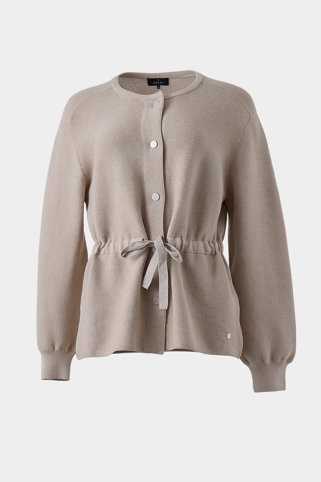 Бежевый жакет Monari из фактурной ткани с длинными рукавами и поясом. Модель застегивается на пуговицы и имеет слегка спущенную линию плеч, что придает ей расслабленный вид. Идеальный выбор для создания стильного и комфортного образа. Состав: хлопок 90%, метализ.полиэстер 10%