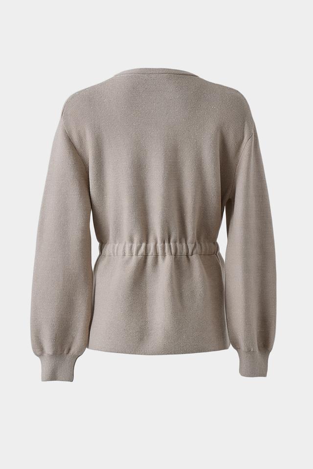 Жакет имеет слегка спущенную линию плеч, что обеспечивает свободу движений и создает расслабленный силуэт. Застежка на пуговицы позволяет регулировать степень прилегания. Модель дополнена поясом, который подчеркивает талию и придает образу женственность.