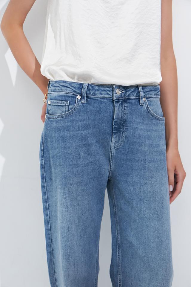 Классический голубой цвет делает эти джинсы универсальными и легко сочетаемыми с различными элементами одежды. Они идеально подойдут для повседневной носки, а также для создания более нарядных образов.