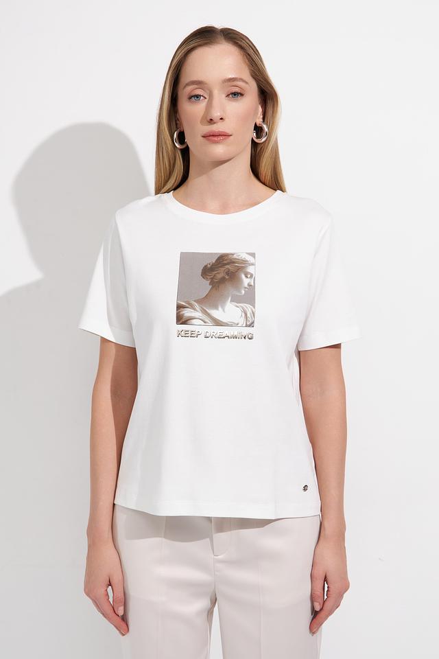 Особенностью данной модели является яркий принт с изображением античной статуи и надписью "Keep Dreaming". Этот принт добавляет футболке оригинальности и индивидуальности.