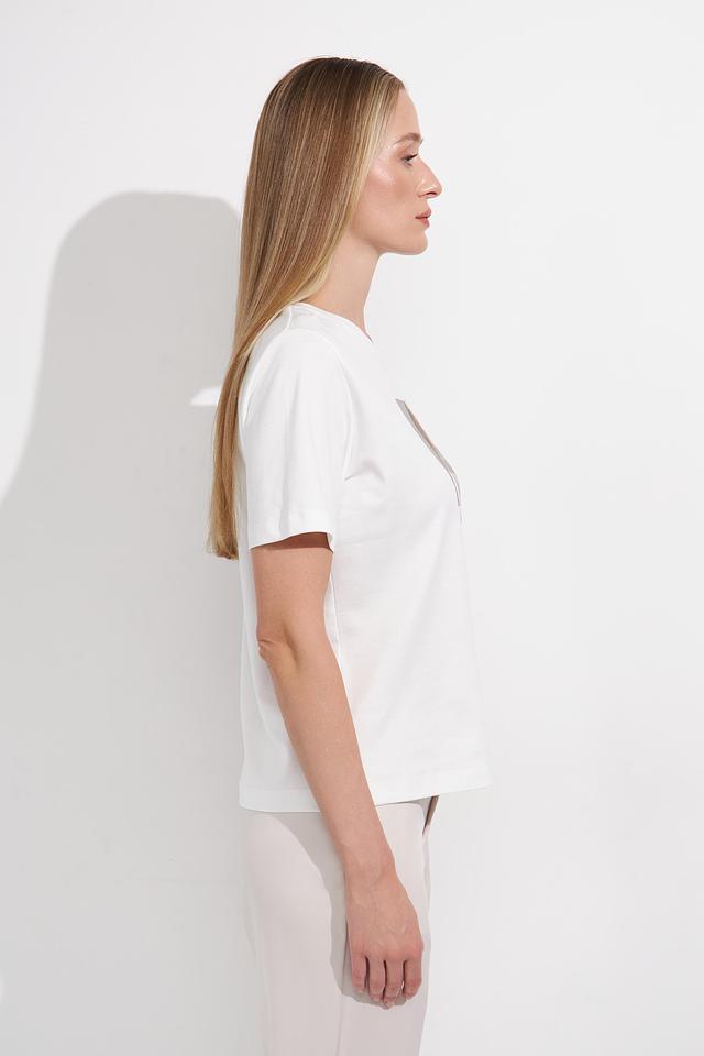 Эта белая футболка от Monari – идеальный выбор для создания повседневного, но стильного образа. Изготовленная из 100% хлопка, она обеспечивает максимальный комфорт и приятные ощущения на коже.