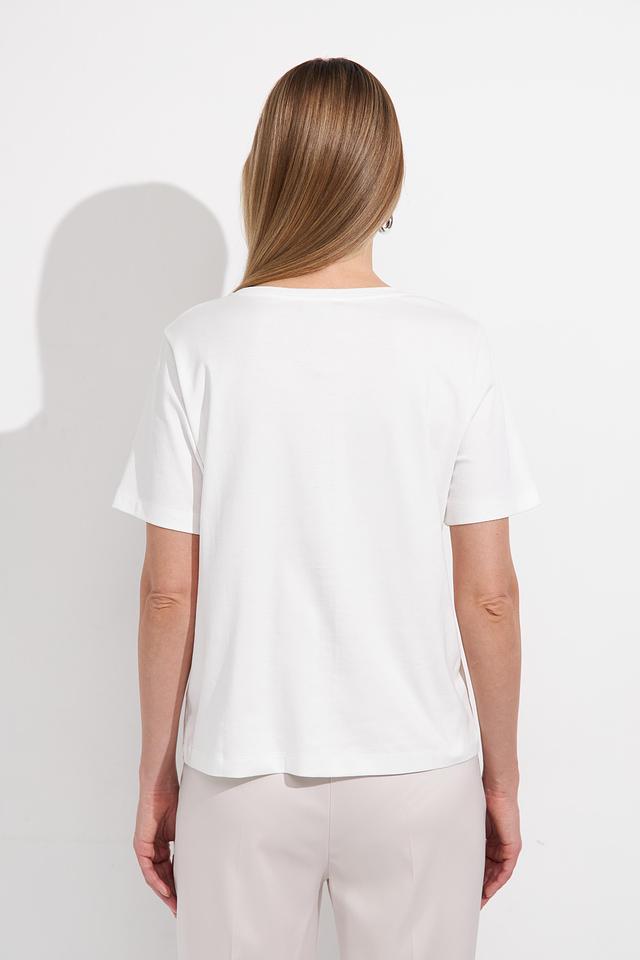 Футболка имеет прямой крой, короткие рукава и классический круглый вырез горловины. Она прекрасно сочетается с джинсами, брюками или юбками, позволяя создавать разнообразные образы. Благодаря высокому качеству материалов и пошива, футболка прослужит вам долгое время.