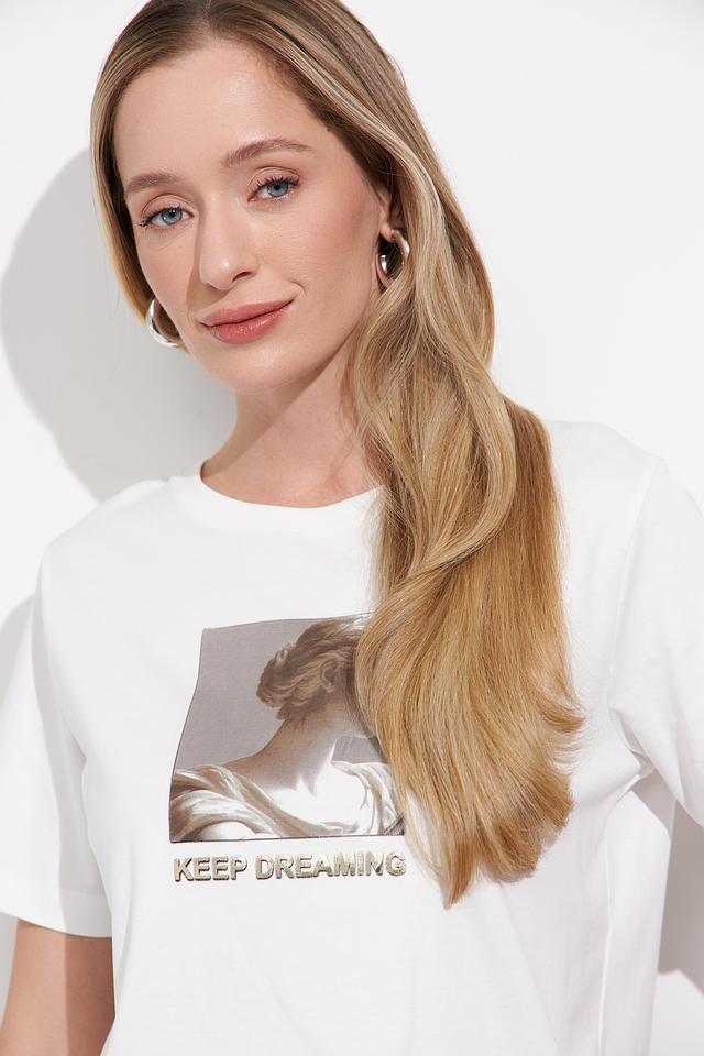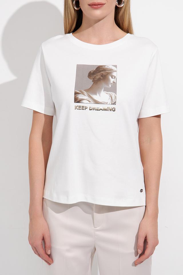 Белая футболка Monari с оригинальным принтом "Keep Dreaming" станет стильным дополнением к вашему гардеробу. Модель из 100% хлопка обеспечивает комфорт и удобство в носке. Состав: хлопок 100%