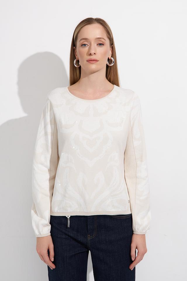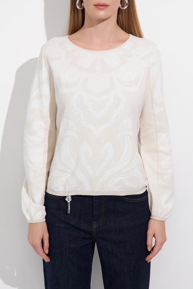 Бежевый пуловер Monari с оригинальным узором – стильное и комфортное решение для создания повседневного образа. Изготовлен из 100% хлопка, обеспечивающего мягкость и приятные ощущения при носке. Состав: хлопок 100%