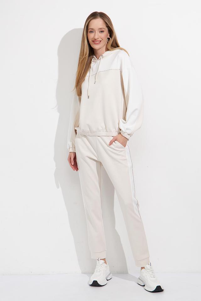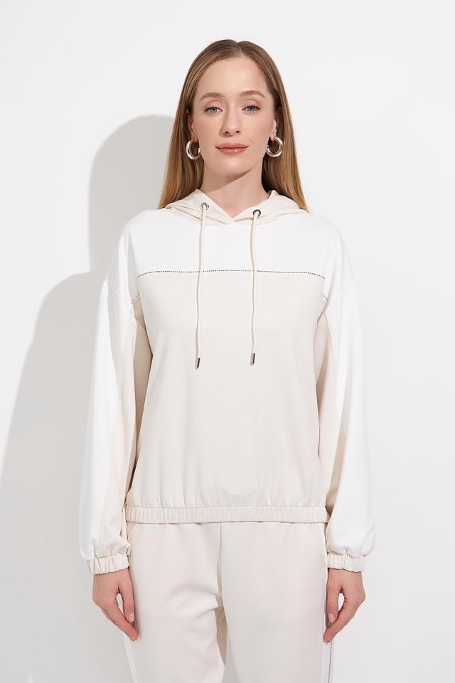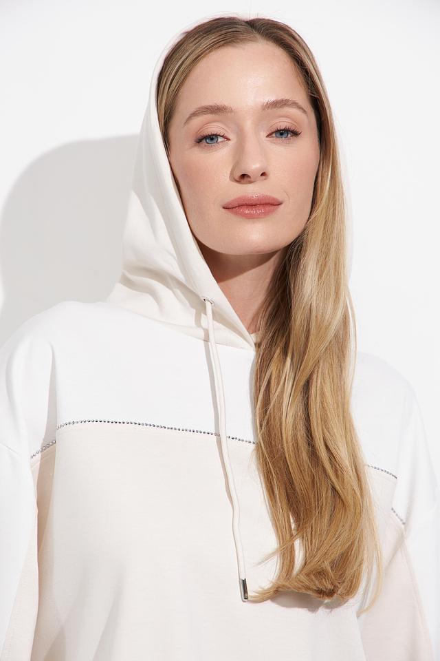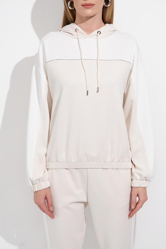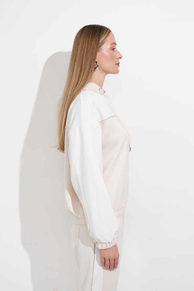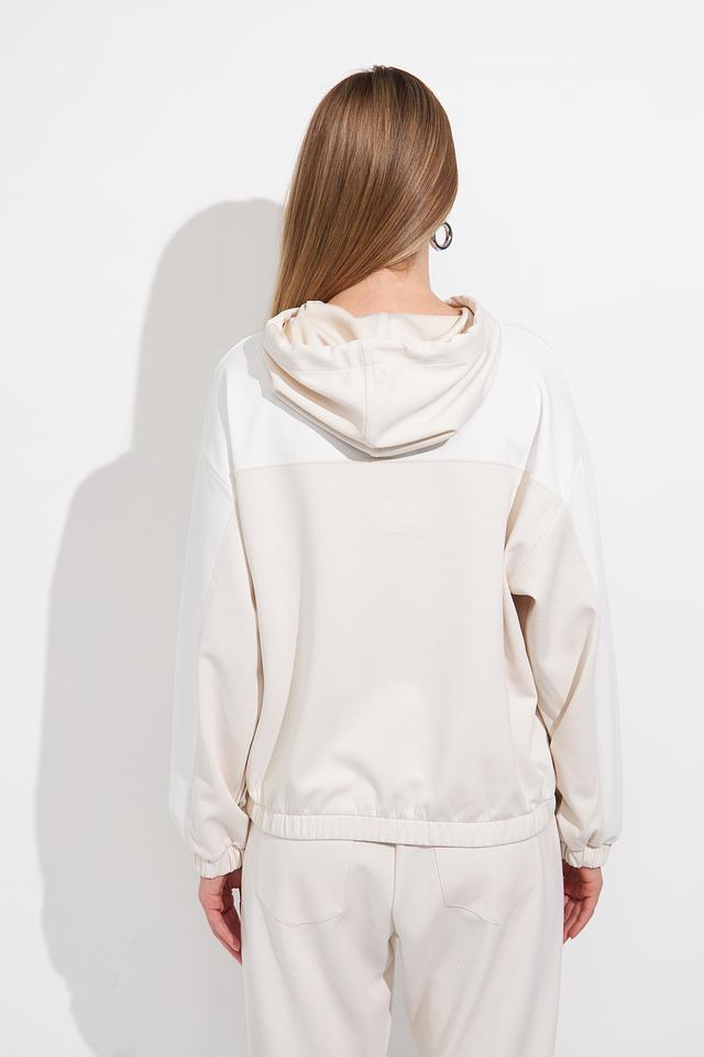 Бежевый пуловер Monari с капюшоном и декоративной строчкой – стильное и комфортное решение для повседневного образа. Модель выполнена из мягкого трикотажа с добавлением вискозы и эластана, обеспечивающего удобную посадку. Состав: полиэстер 55%, вискоза 38%, эластан 7%