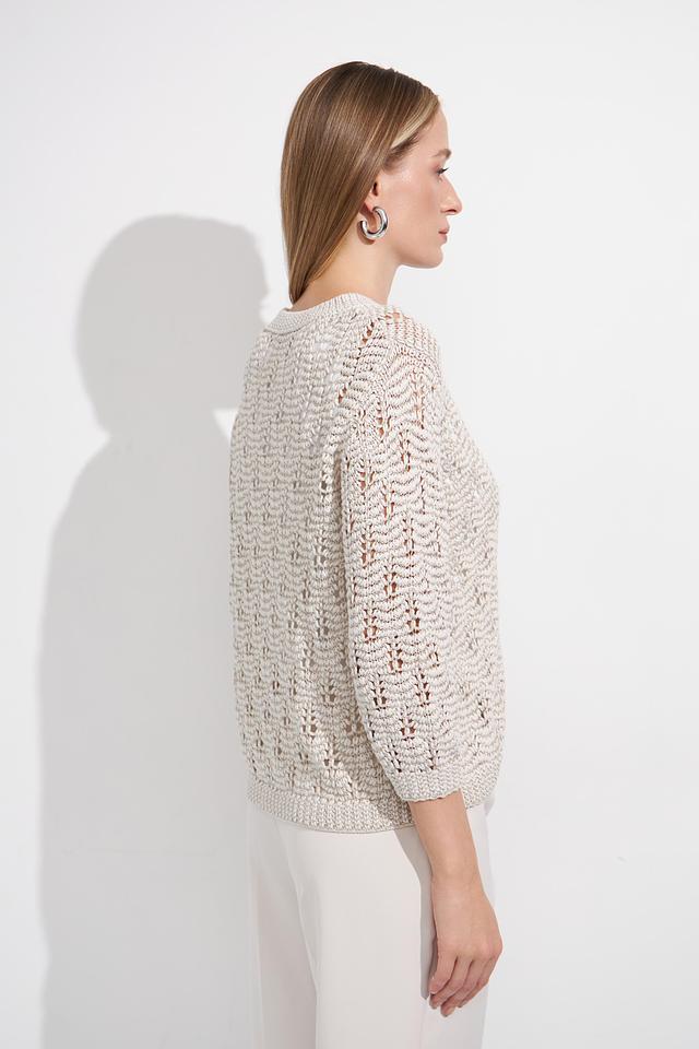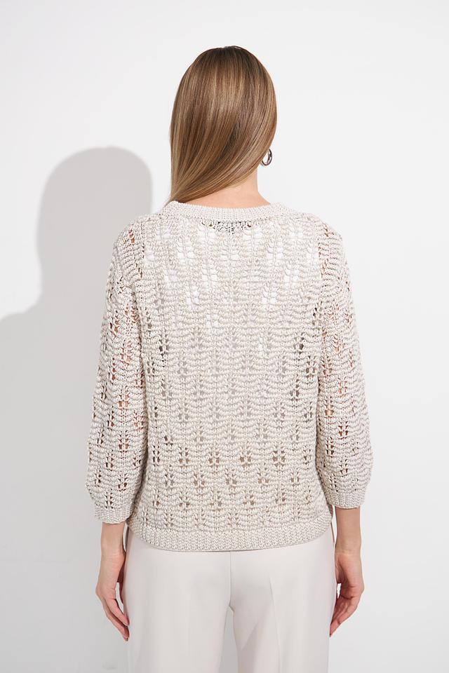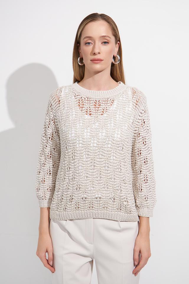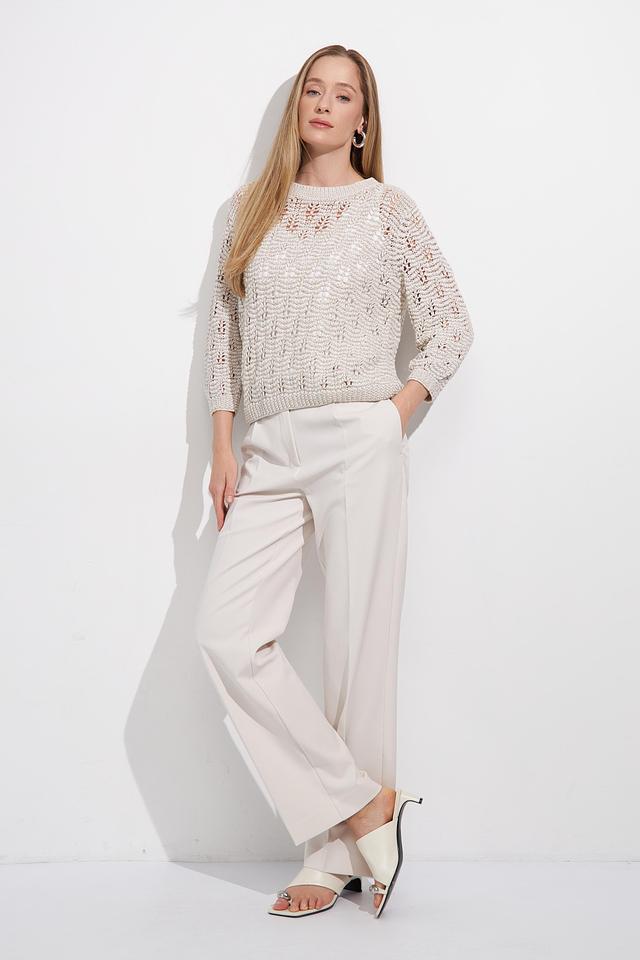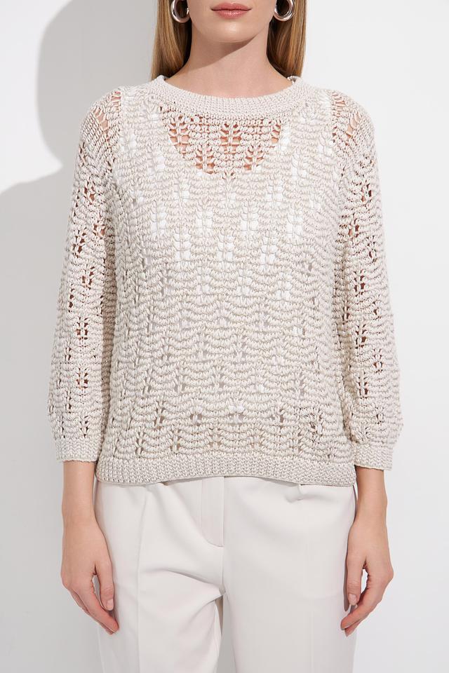 Бежевый пуловер Monari из ажурного трикотажа станет отличным дополнением к вашему гардеробу. Модель с рукавом 3/4 и округлым вырезом горловины выполнена из мягкого и приятного к телу материала. Состав: хлопок 59%, полиакрил 19%, вискоза 18%, метализ.полиэстер 4%