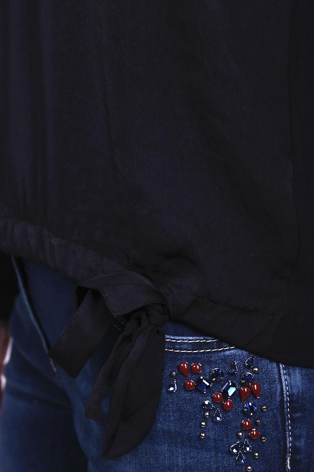 Чёрная блуза Monari из 100% полиэстера с длинными рукавами и декоративными завязками по бокам. Эта модель отличается удобным кроем и стильным дизайном, идеально подходит для создания повседневных образов. Состав: полиэстер 100%