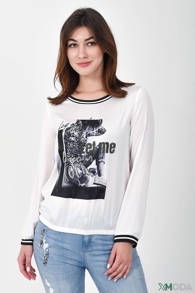 Белая блуза Monari с эффектным принтом "Rock me" станет ярким акцентом вашего образа. Модель выполнена из лёгкой ткани и дополнена контрастной отделкой горловины и рукавов. Состав: полиэстер 100%