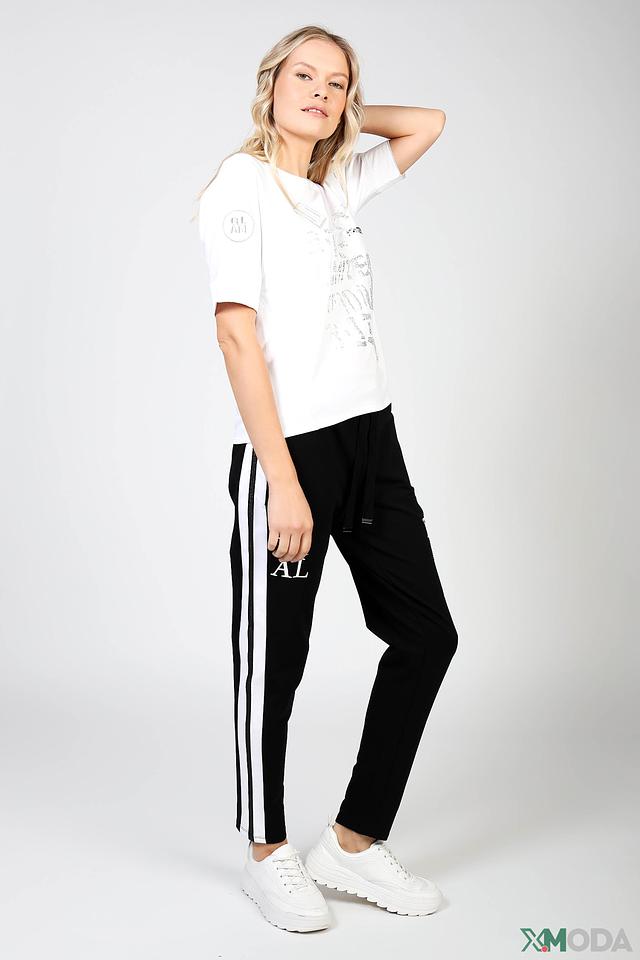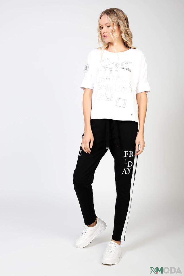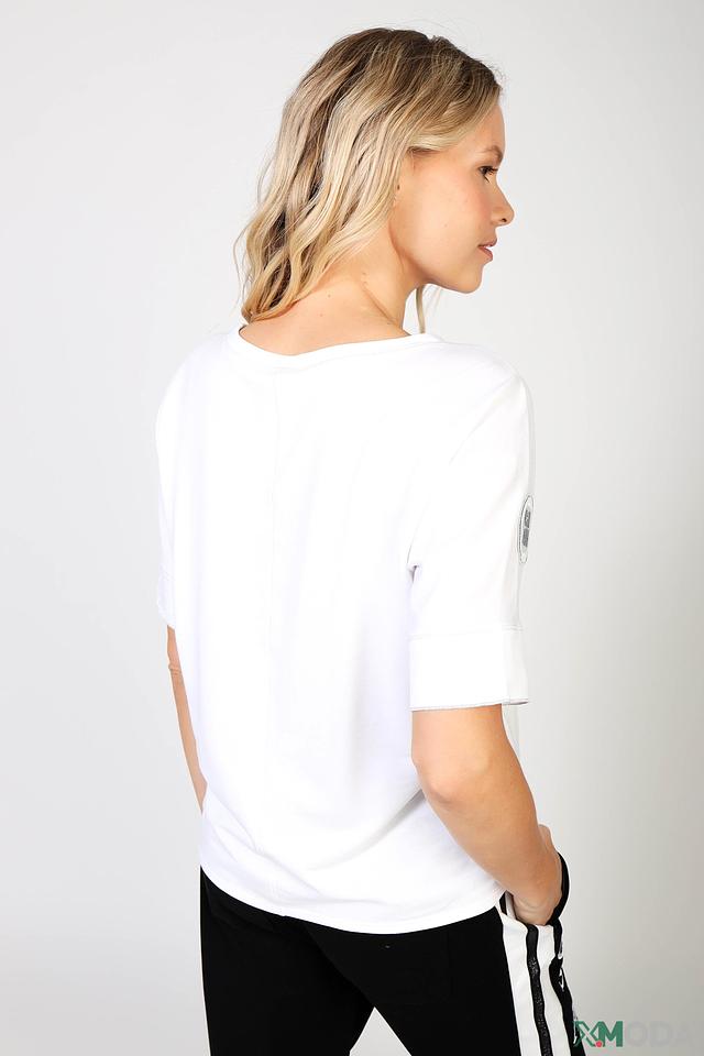 Белая футболка Monari с оригинальным принтом и короткими рукавами. Изготовлена из мягкого хлопка с добавлением модала и эластана для комфорта и хорошей посадки. Состав: хлопок 60%, модал 30%, эластан 10%