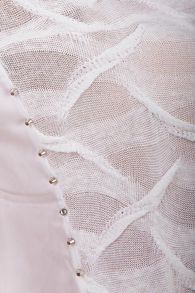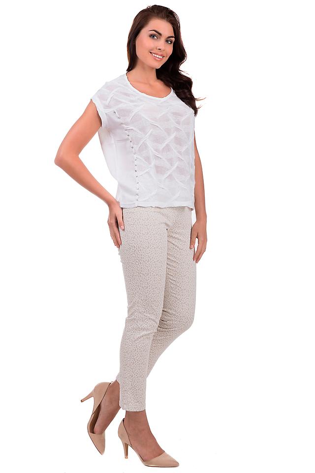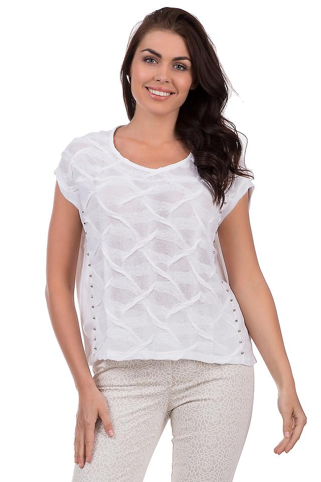 Белая блуза Monari с оригинальной отделкой в виде ромбов и V-образным вырезом. Легкая и воздушная модель из льна и вискозы станет отличным дополнением к летнему гардеробу. Состав: лен 65%, вискоза 35%