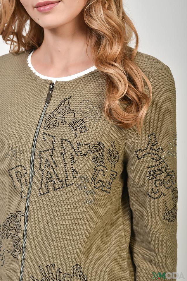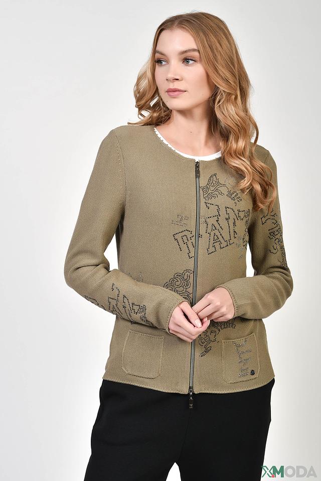 Жакет Monari хаки цвета с вышивкой – стильная и комфортная модель из 100% хлопка. Застежка на молнию, удобные карманы и оригинальный декор делают этот жакет отличным выбором для создания повседневных образов. Состав: хлопок 100%