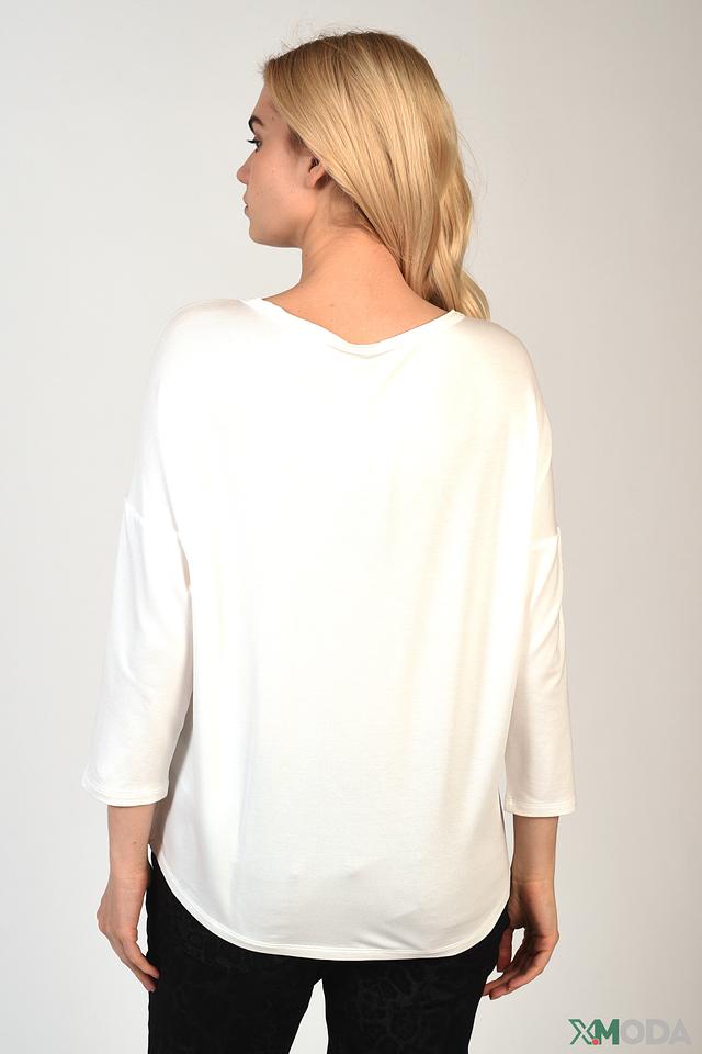Модель имеет свободный крой, который обеспечивает комфорт в носке, а рукава 3/4 делают ее универсальной для любого времени года. V-образный вырез горловины подчеркивает женственность силуэта.