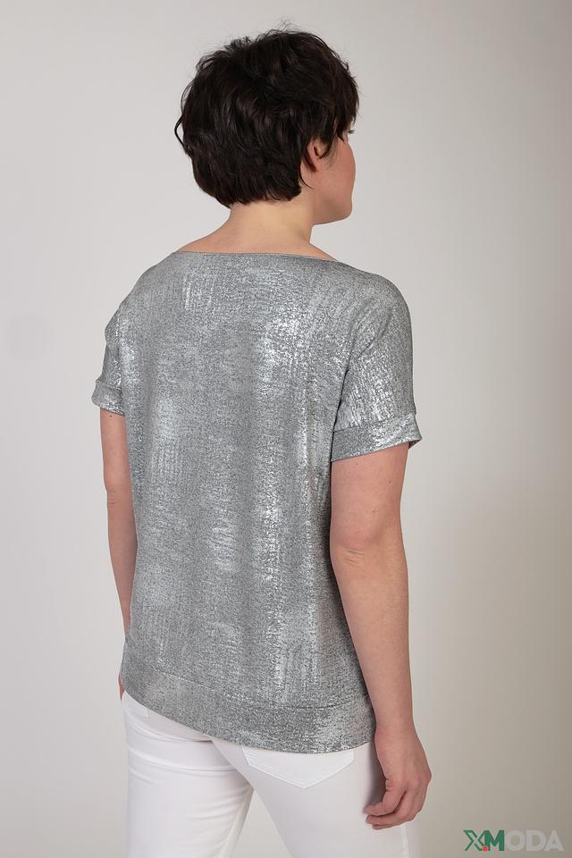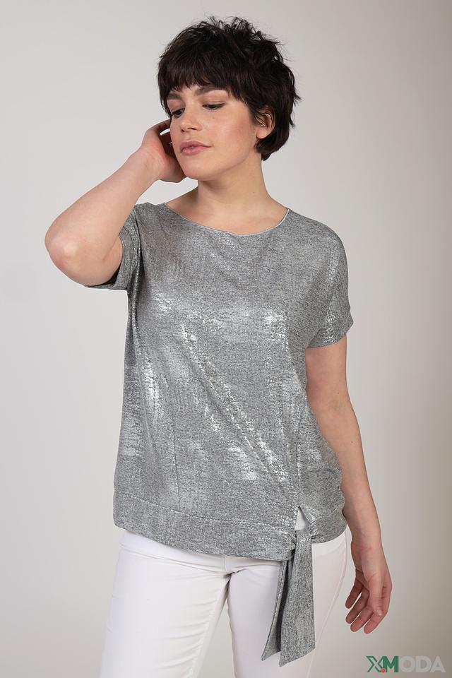 Блуза Monari серебристого цвета с короткими рукавами и завязкой на талии. Изготовлена из полиэстера с добавлением эластана, что обеспечивает комфорт и лёгкость в уходе. Стильный и элегантный выбор для создания модных образов. Состав: полиэстер 95%, эластан 5%