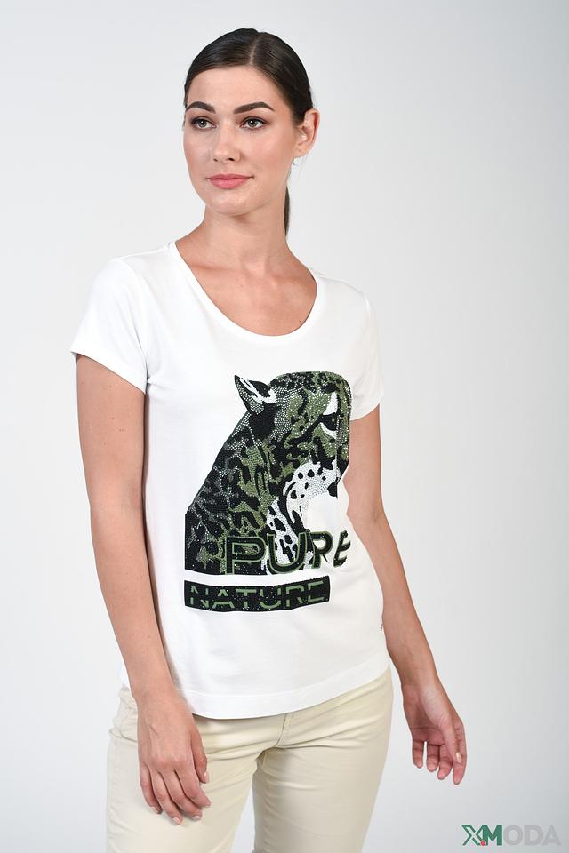 Белая футболка Monari с эффектным принтом леопарда – стильное и комфортное решение для повседневного образа. Изготовлена из мягкого хлопка с модалом, обеспечивающего приятные ощущения на коже. Состав: хлопок 50%, модал 50%