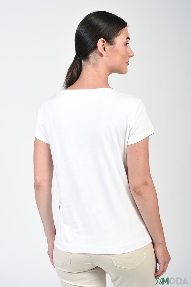 Футболка имеет классический прямой крой и короткие рукава, что обеспечивает комфорт в носке. Она идеально сочетается с джинсами, брюками или юбками, создавая стильный и непринужденный образ. Состав ткани: 50% хлопок, 50% модал.
