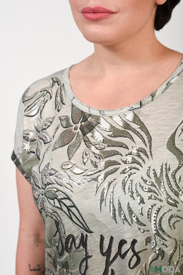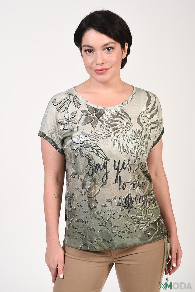 Блуза Monari цвета хаки с ярким цветочным принтом и надписью "Say yes to adventue". Модель выполнена из мягкого хлопка с модалом, что обеспечивает комфорт в носке. Прекрасно сочетается с брюками и юбками. Состав: хлопок 50%, модал 50%