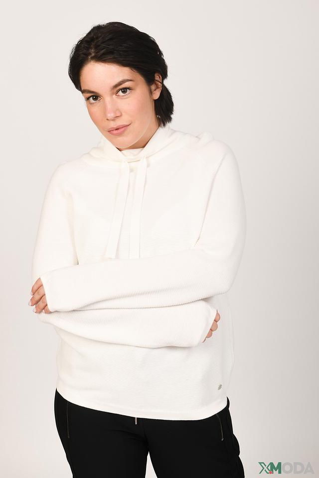 Белая водолазка Monari с капюшоном и шнурками – стильное и комфортное решение для повседневного гардероба. Изготовлена из мягкого хлопка, обеспечивающего приятные ощущения на коже. Модель имеет слегка свободный крой. Состав: хлопок 100%