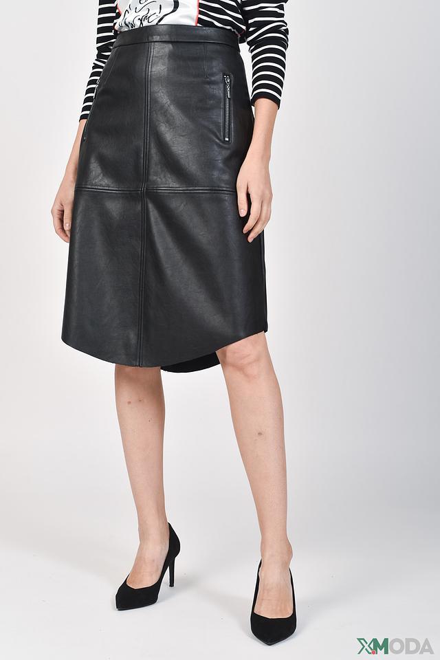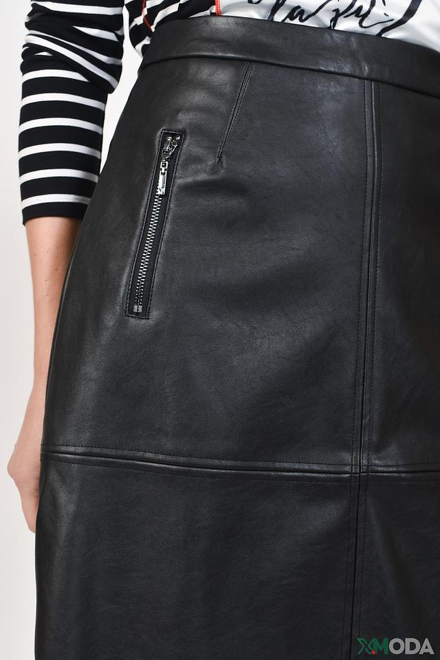 Чёрная юбка от Monari из экокожи с асимметричным низом и боковыми молниями. Стильный и современный дизайн, идеально подходит для создания эффектных образов. Состав: полиуретановые нити 60%, полиэстер 40%