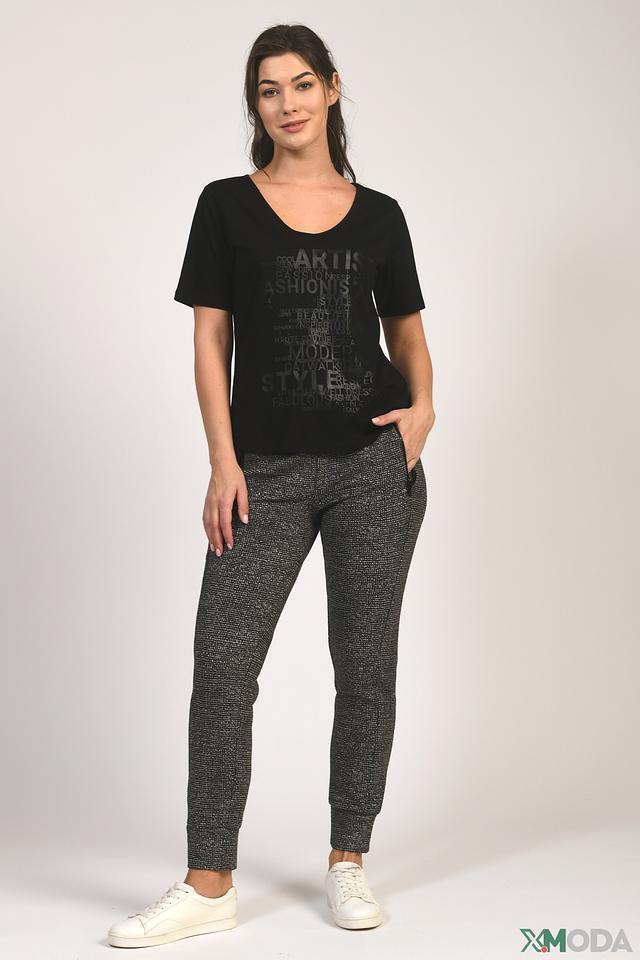Чёрная футболка Monari с оригинальным принтом "ARTIST" станет стильным дополнением к вашему гардеробу. Изготовлена из мягкого и приятного к телу сочетания хлопка и модала, обеспечивая комфорт в течение всего дня. Состав: хлопок 50%, модал 50%